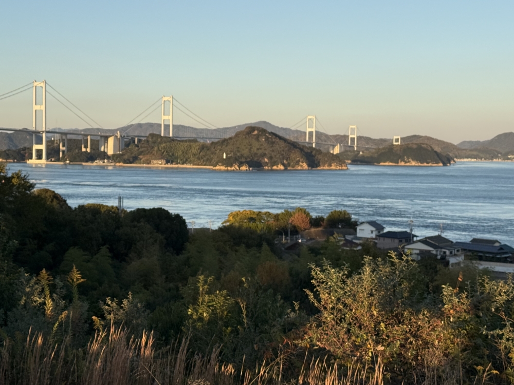帰路はお婆婆がまだ通ったことがないというしまなみ街道へ。本当に初めてなのかもう記憶が定かではないが、来島海峡のSAで夕日の時刻を待って来島大橋へ。